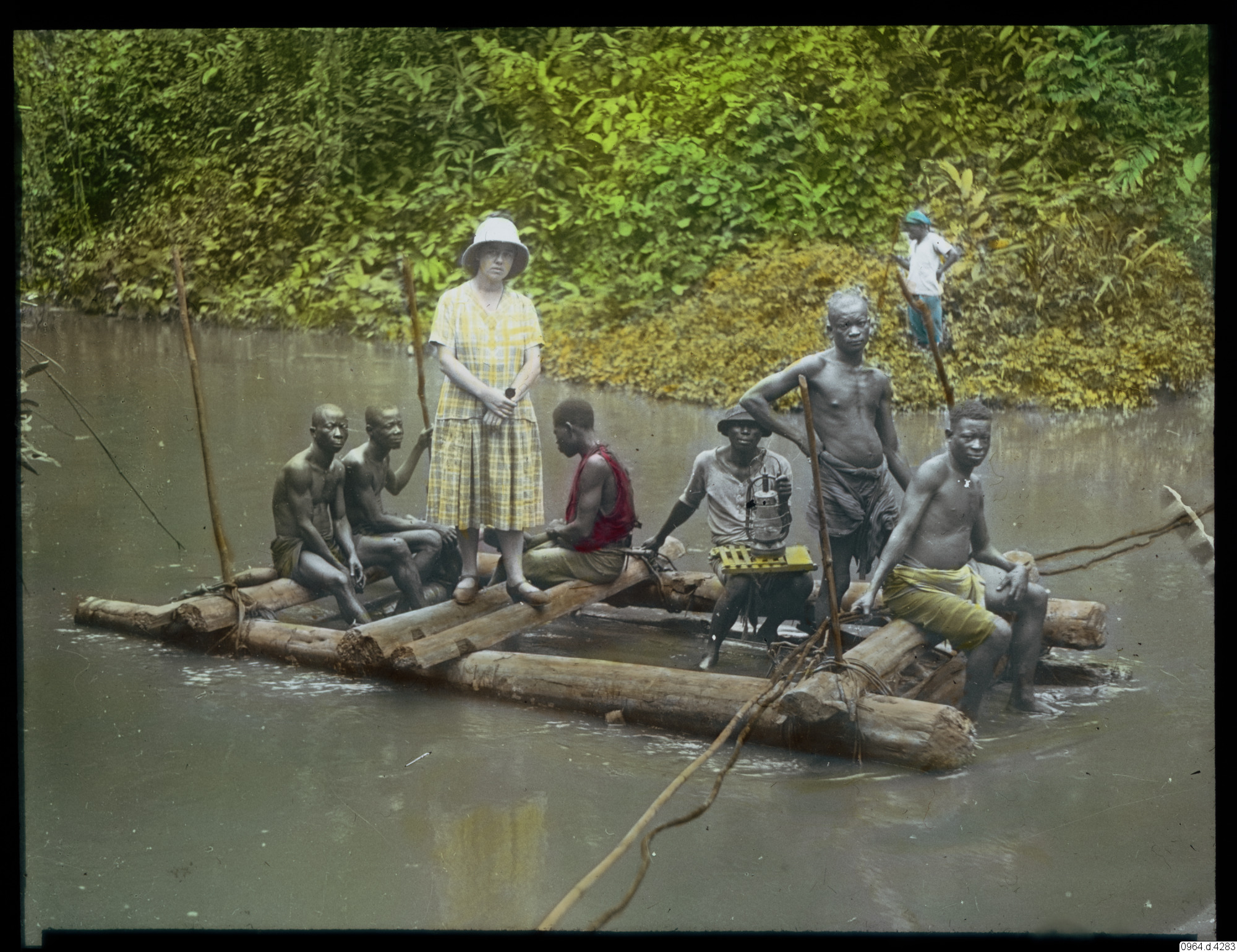 På byresa, Madouma. Kvinnlig missionär på flotte.