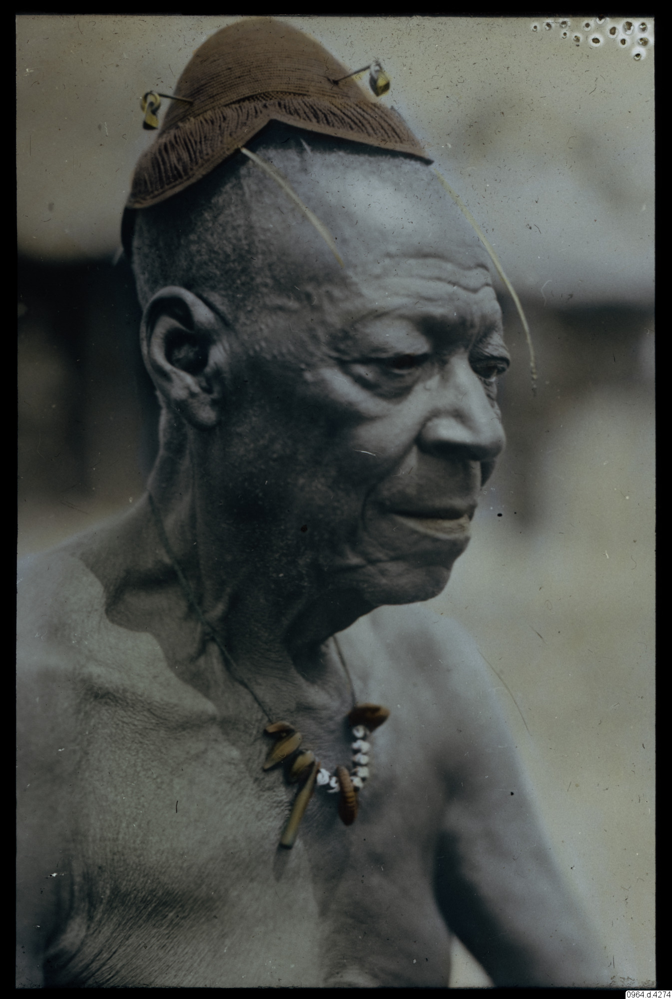 Porträtt av äldre man med huvudbonad. Ministre, Bakuba.