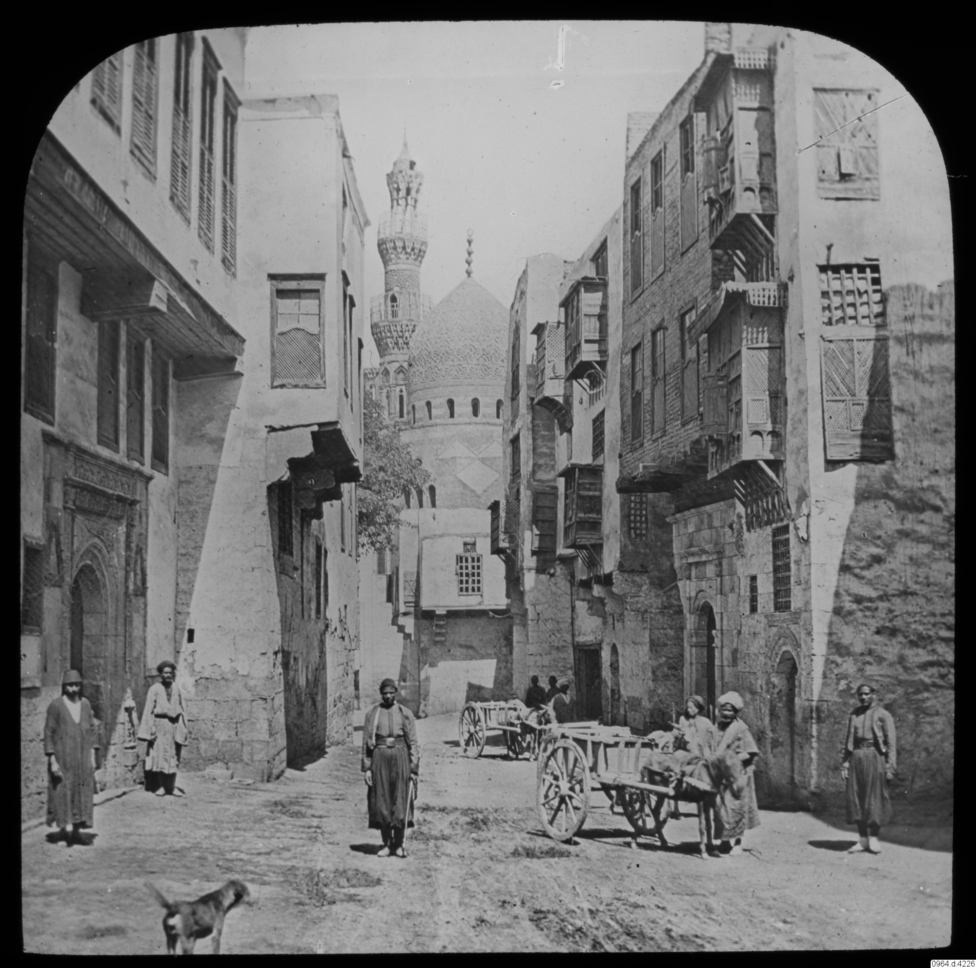 hund, minaret, personer, gata, kupoltak, byggnader, fotografi, photograph