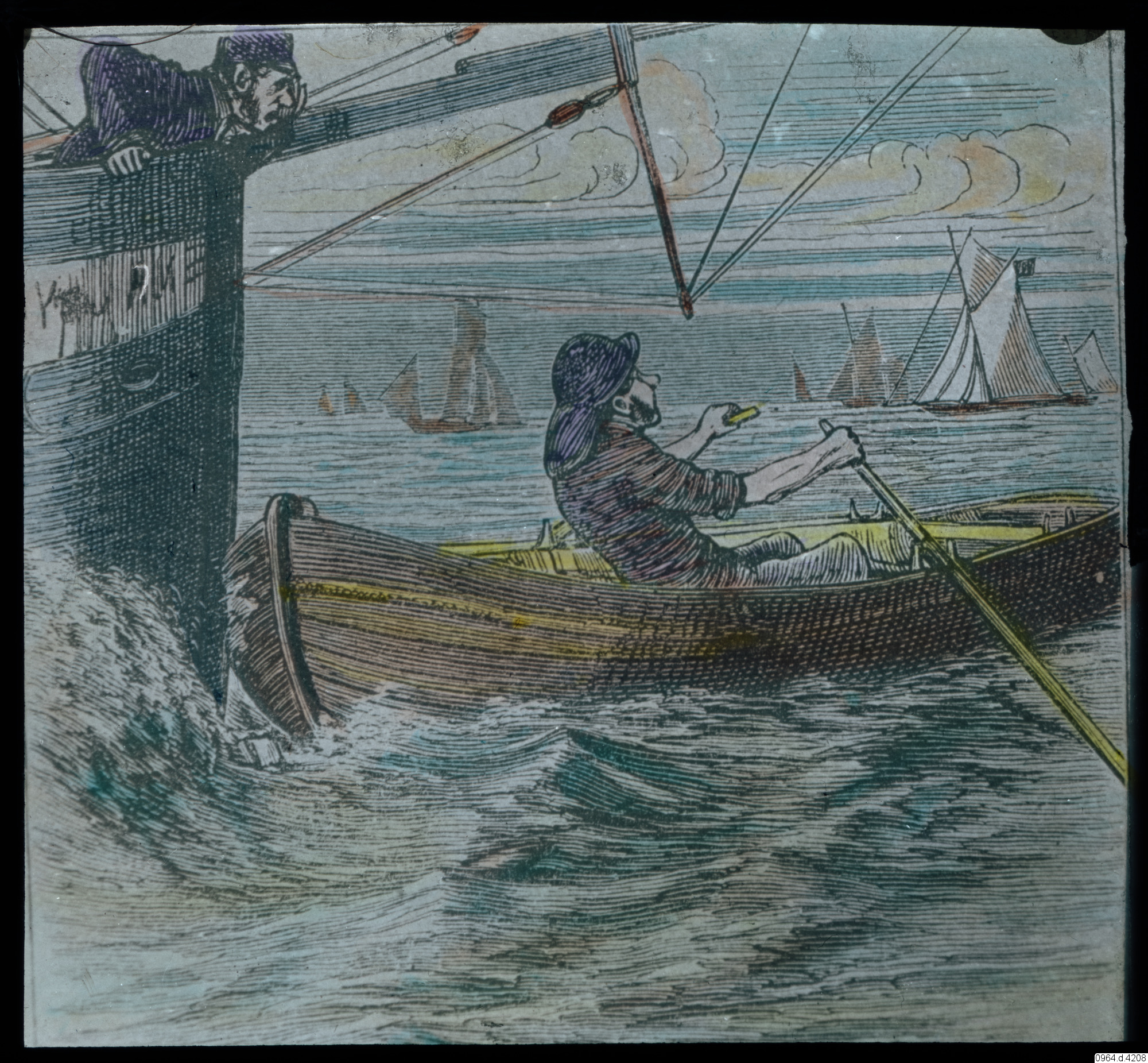 illustration, teckning, skepp, roddbåt, roddare, människor, fotografi, photograph