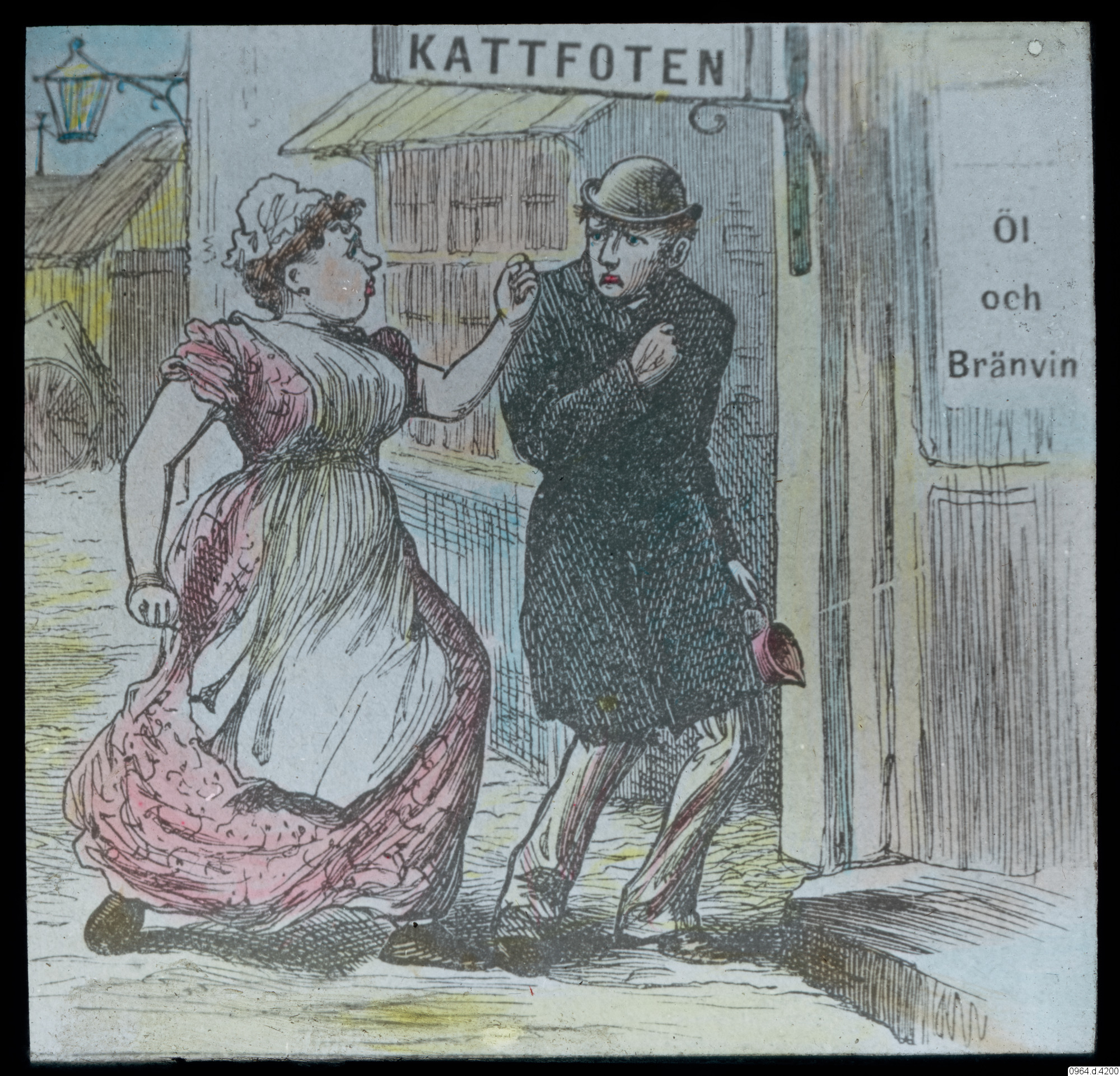 Han bor under kattfoten." Då det heter om någon, så måste han försöka behaga sin kisse, så han ej klöser honom mer än vanligt. En god man har vanligtvis en god hustru, men den, som är bunden vid en ragata, kunde lika gärna låta flå sig och sätta sig i en tunna med saltlake upp till halsen. I ett fall så bör hustrun sätta mannen under kattfoten, om han smyger till krogen och gör slut på förtjänsten. Kläm därför åt honom, kära hustru, och lär honom blygas för sig själv, om du kan. S. 11.