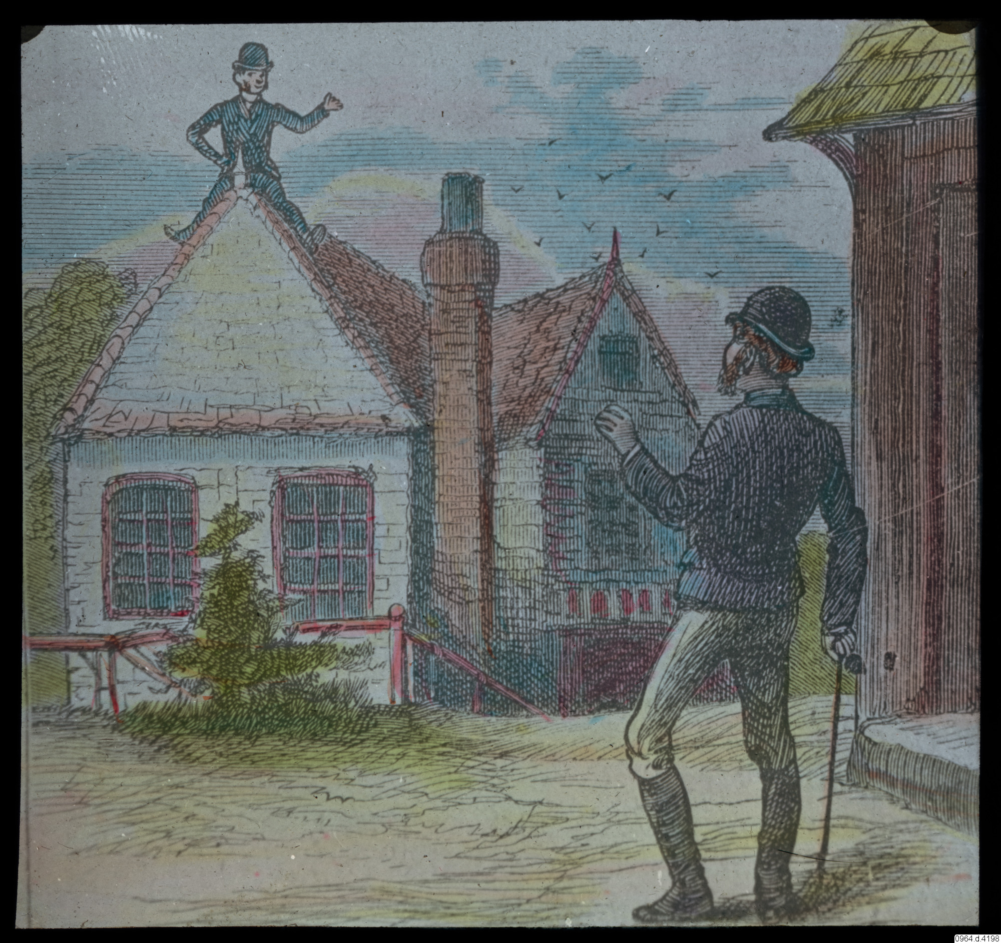 teckning, illustration, hus, män, byggnad, fotografi, photograph