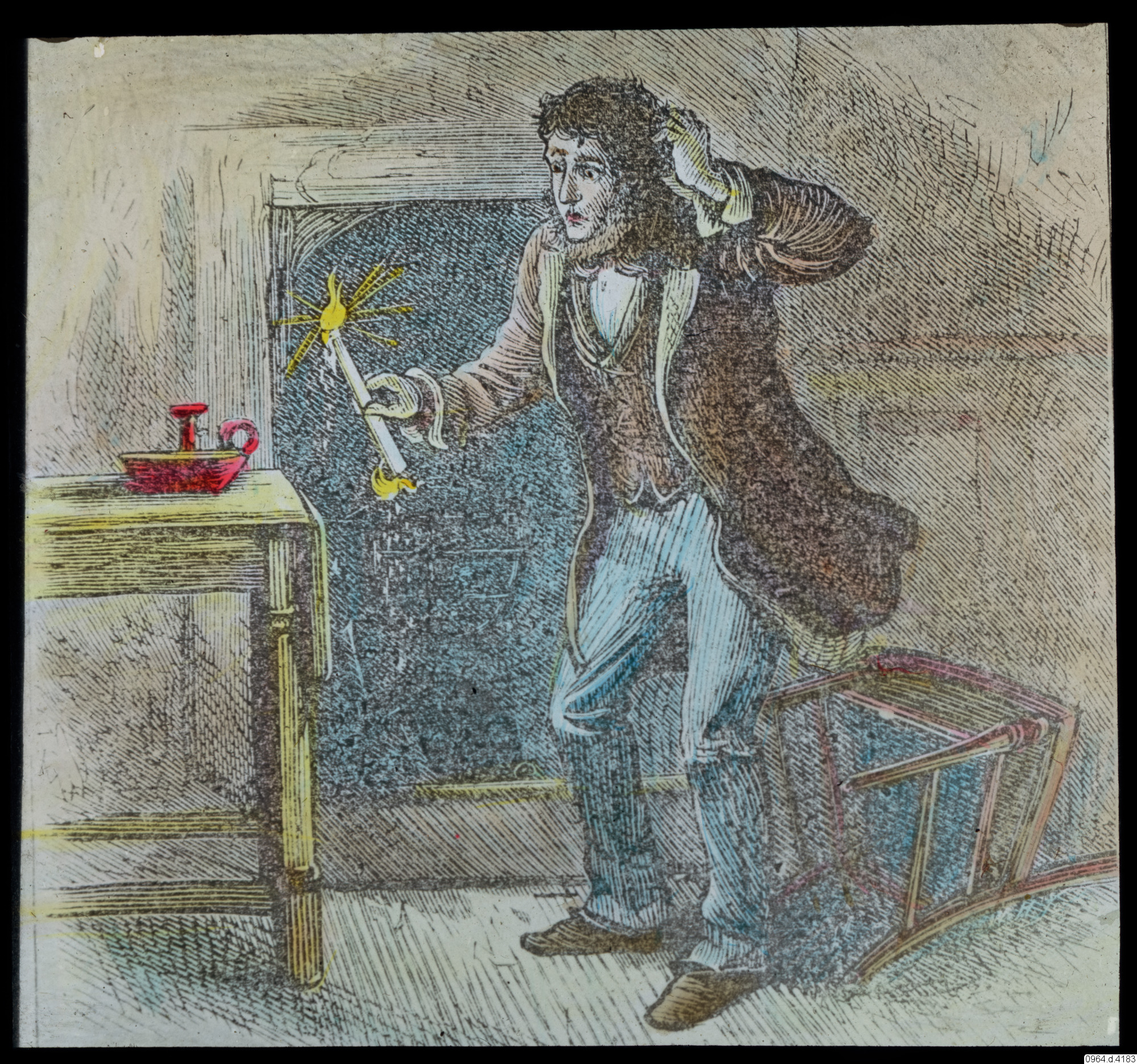 ljusstake, teckning, illustration, stearinljus, man, bord, fotografi, photograph