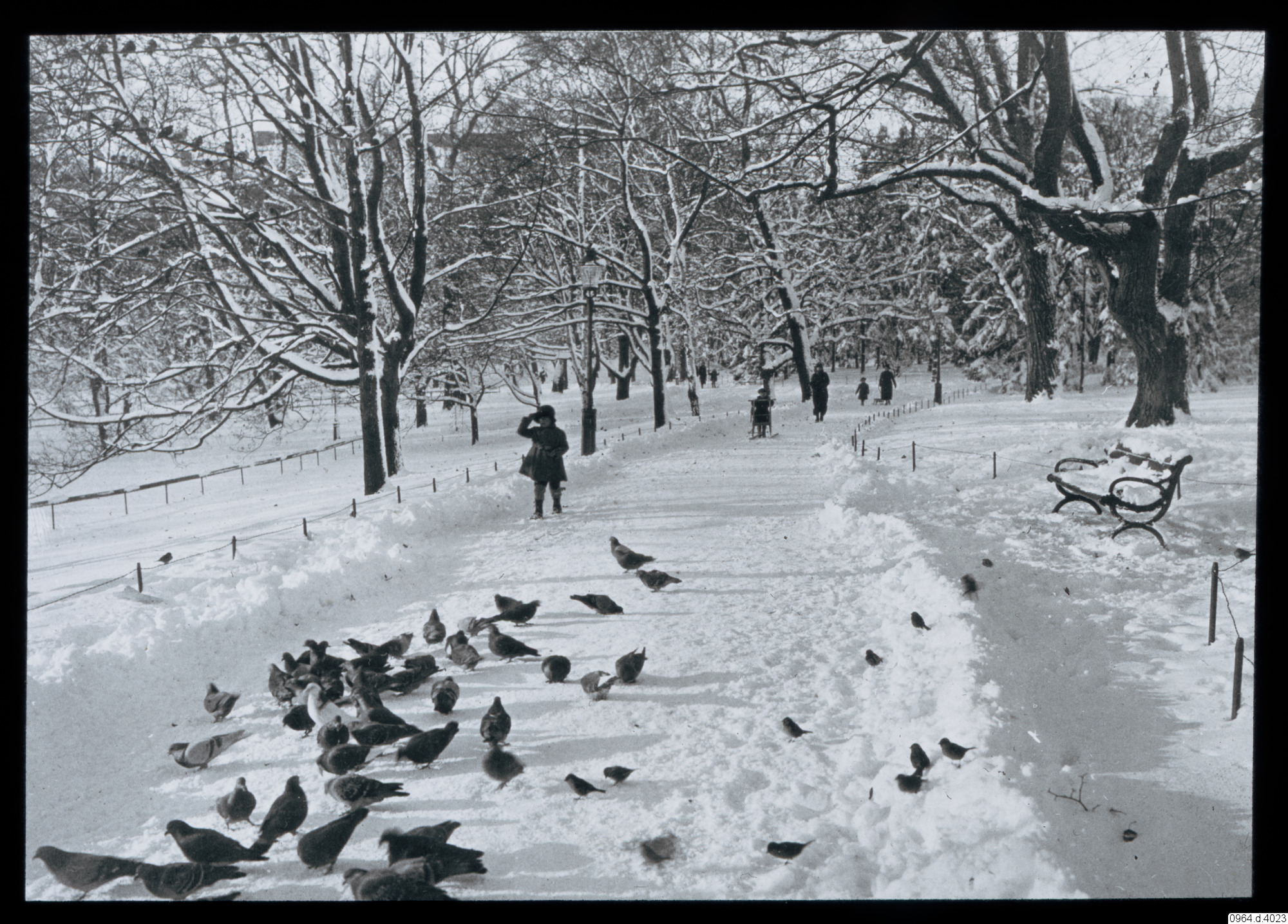 spark, snö, fåglar, duvor, barn, parkbänk, fotografi, photograph