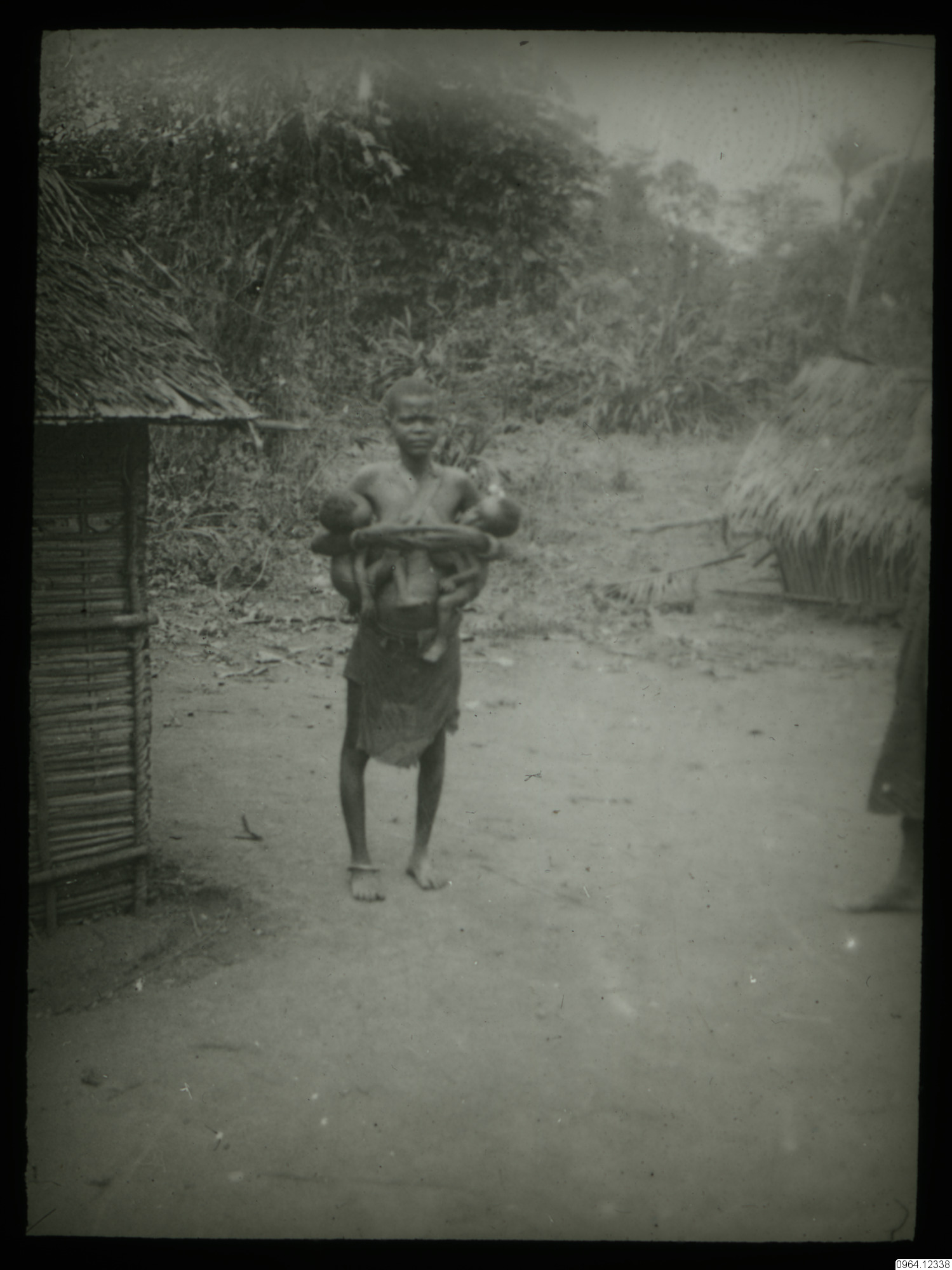 Kvinna som bär två barn.