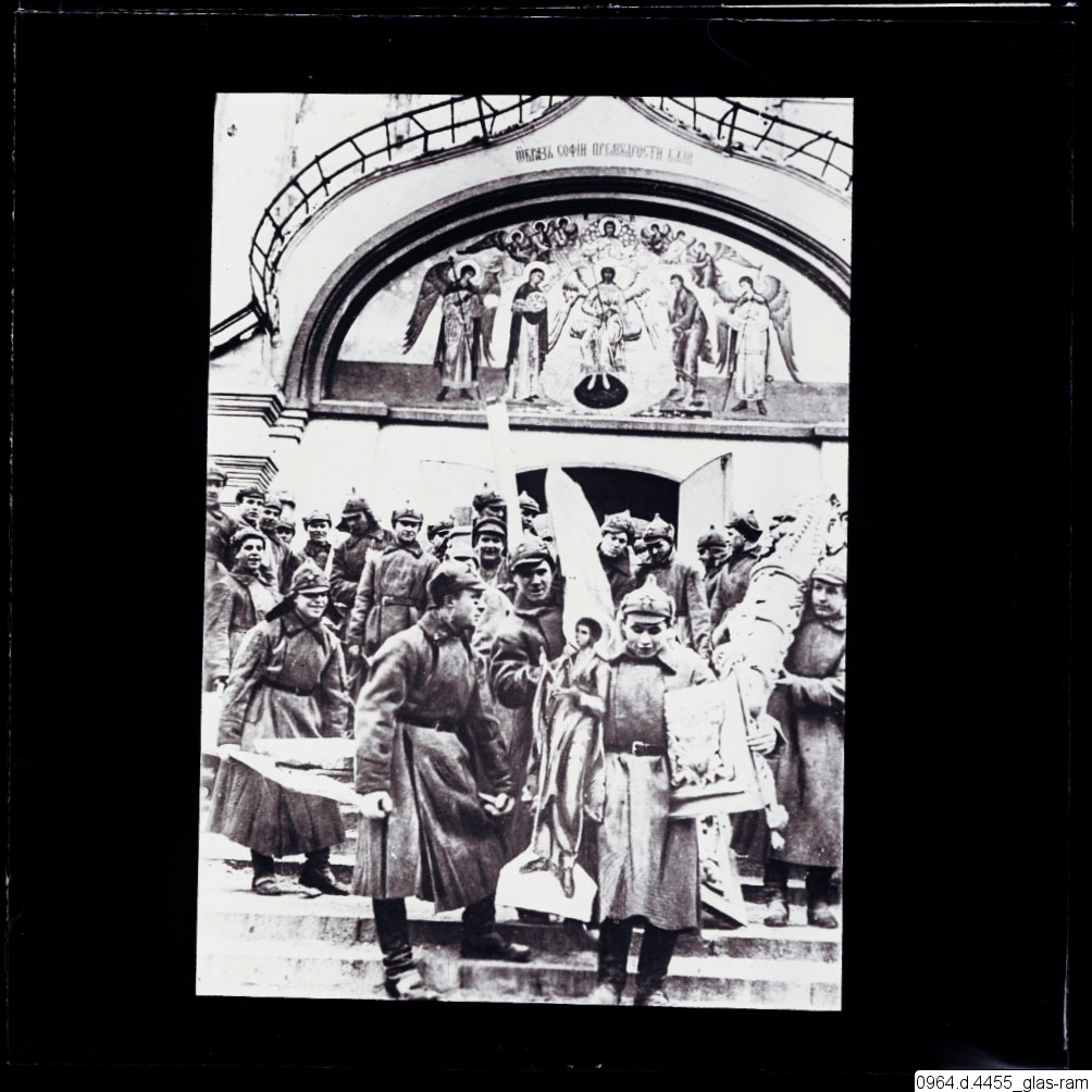 Förstörelsen av Sankt Simonov klostret i Moskva under ryska revolutionen, av soldater ur Röda Armén.