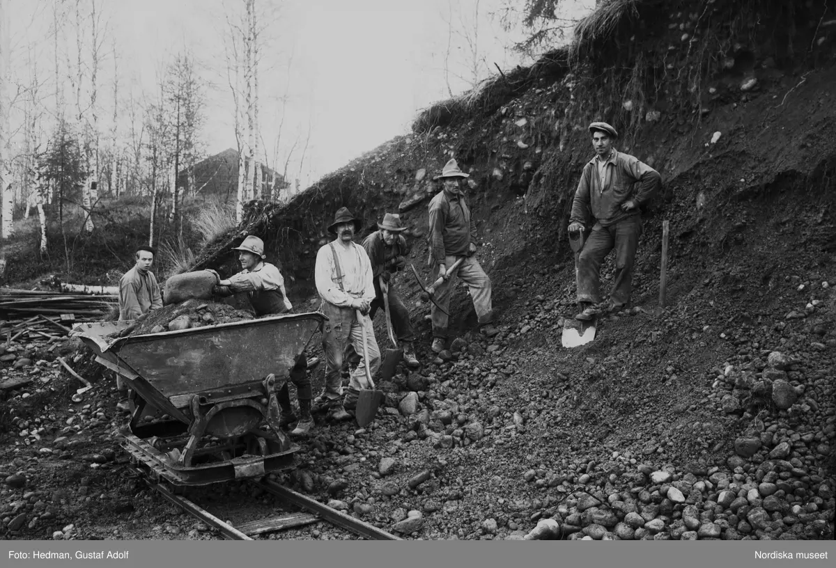 Vägbygge vid Transtrands station. Grupporträtt