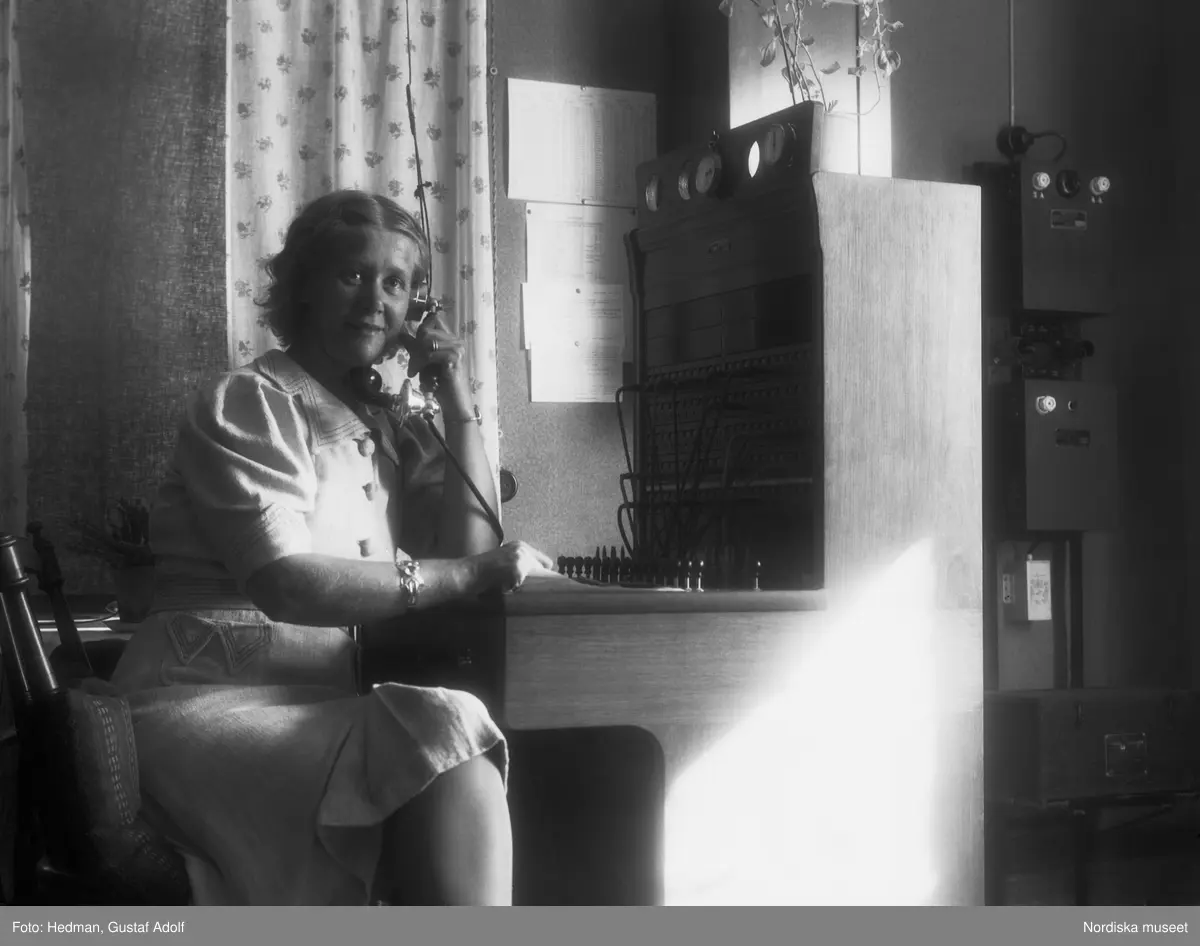 Hilda Stadig vid telefonväxel