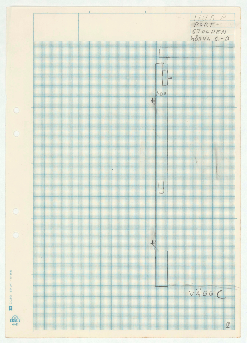 Titel: Skånegården. Bostadshuset. Detaljritning. HUS P. PORTSTOLPEN: HÖRNA C-D