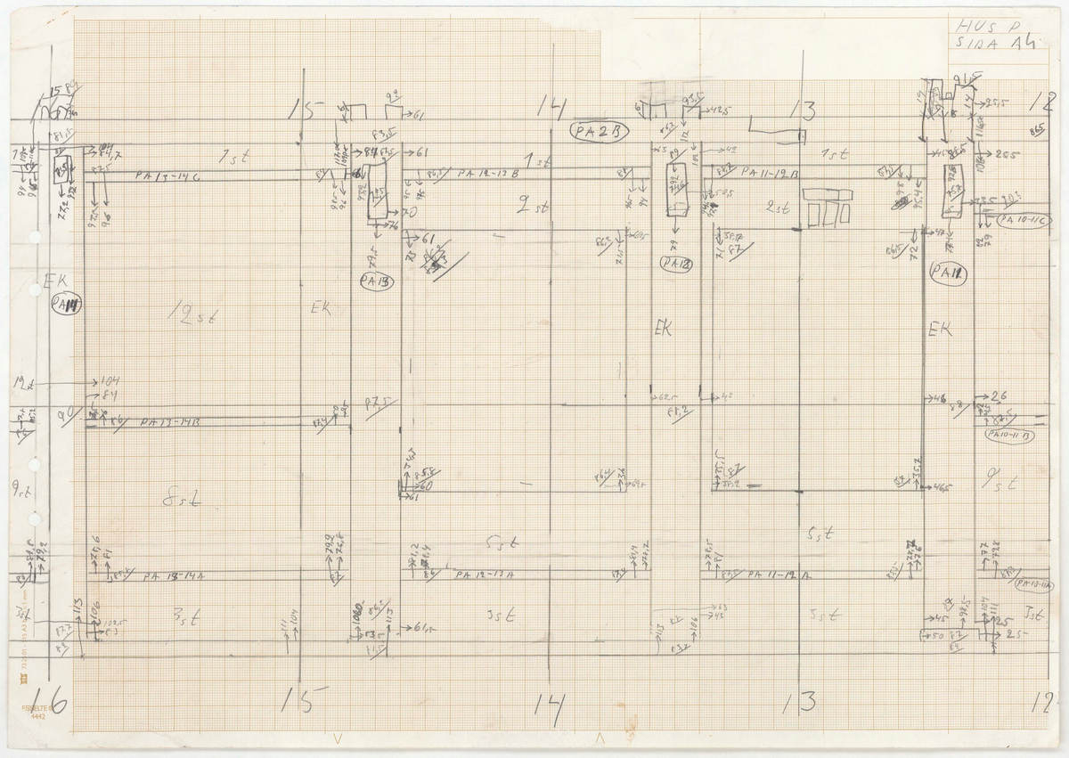 Titel: Skånegården. Bostadshuset. Detaljritning. HUS P. SIDA A4 (?)