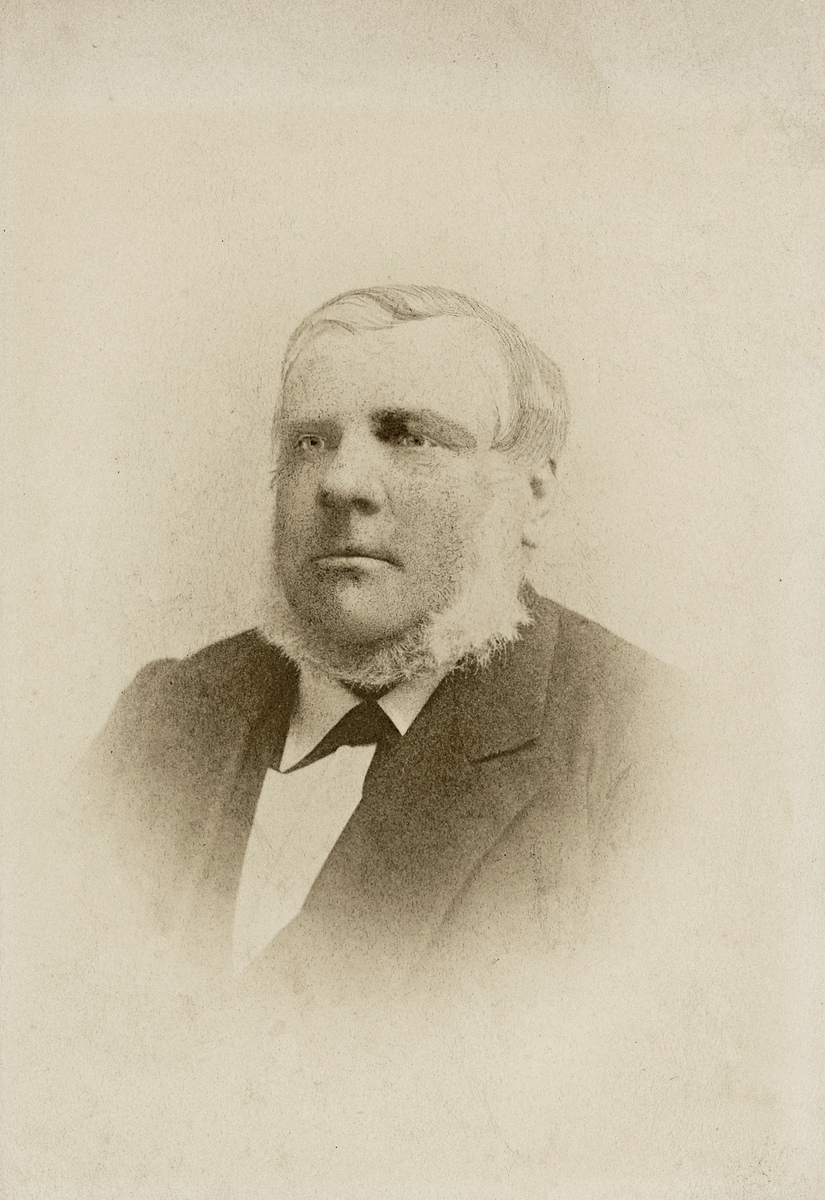 En äldre man i mörk kostym med väst.