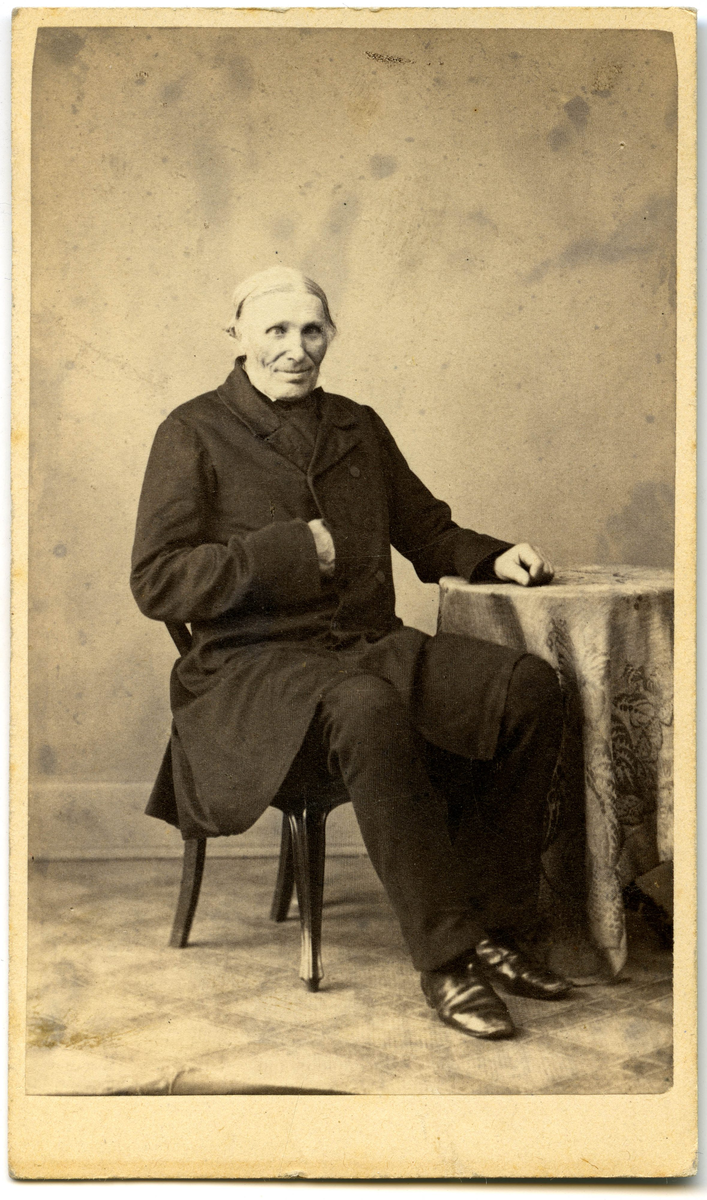 Porträtt på en man i helfigur sittande vid ett bord.