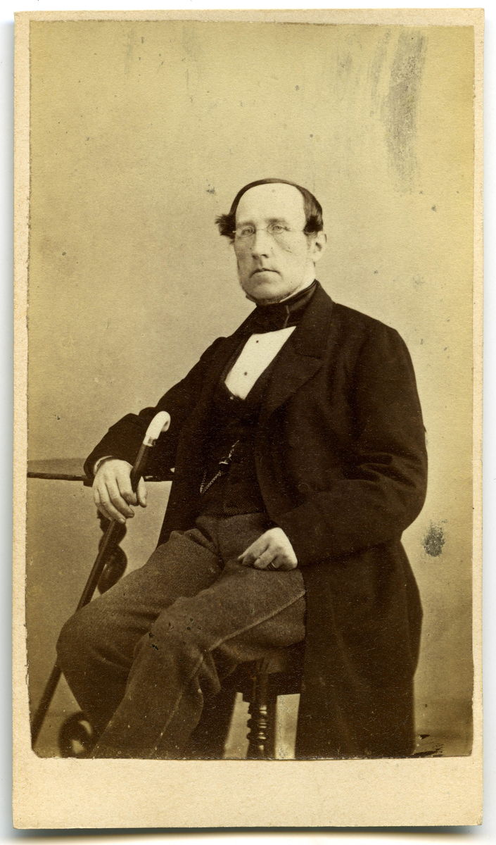 Porträtt på en man sittande i helfigur.