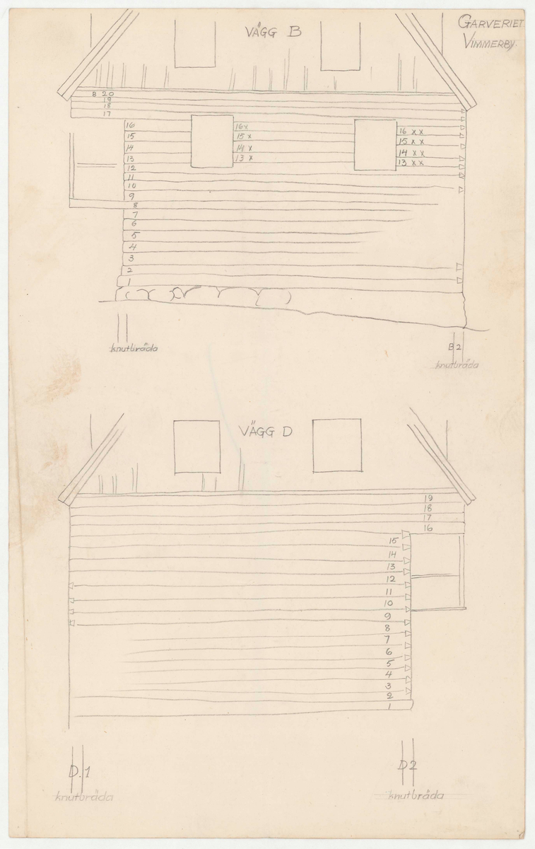 Titel: Garveriet. Uppmätningsritning. Vägg B och D.