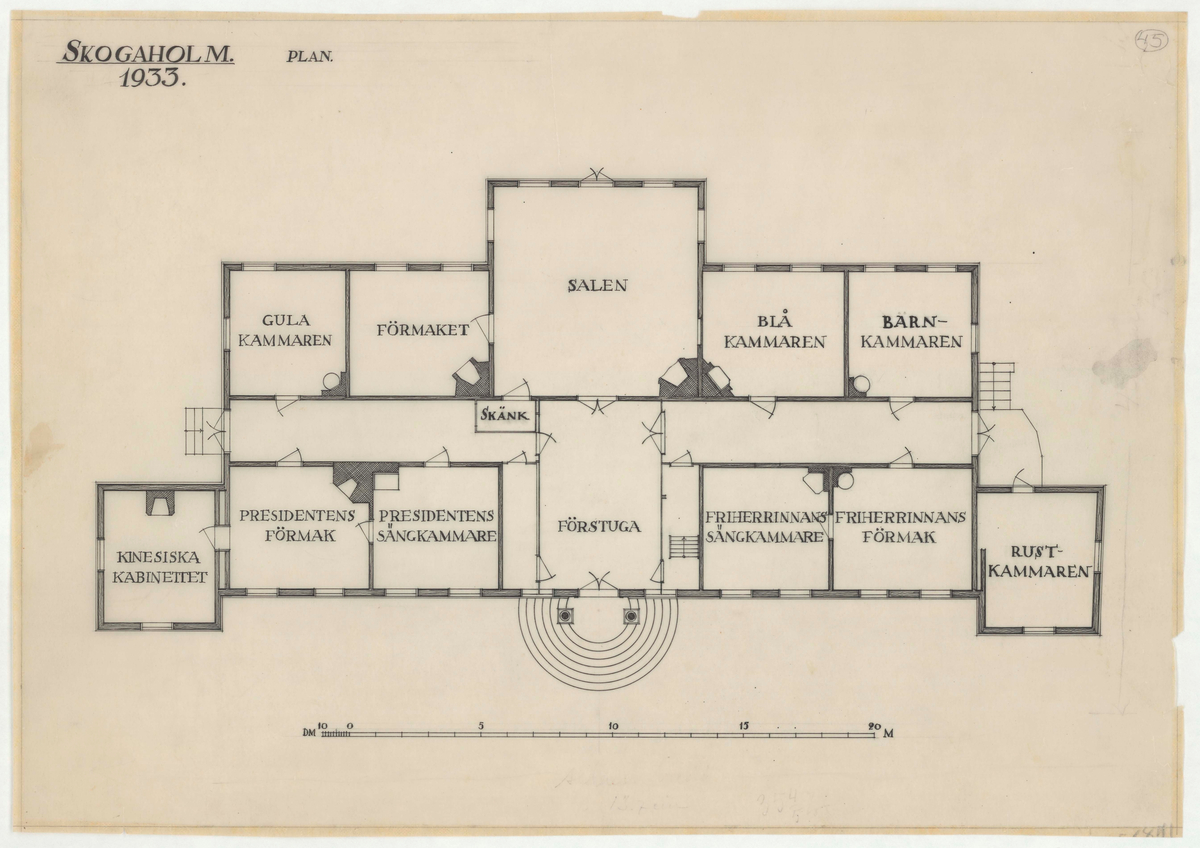 Titel: Skogaholms herrgård. Huvudbyggnaden. Planritning.