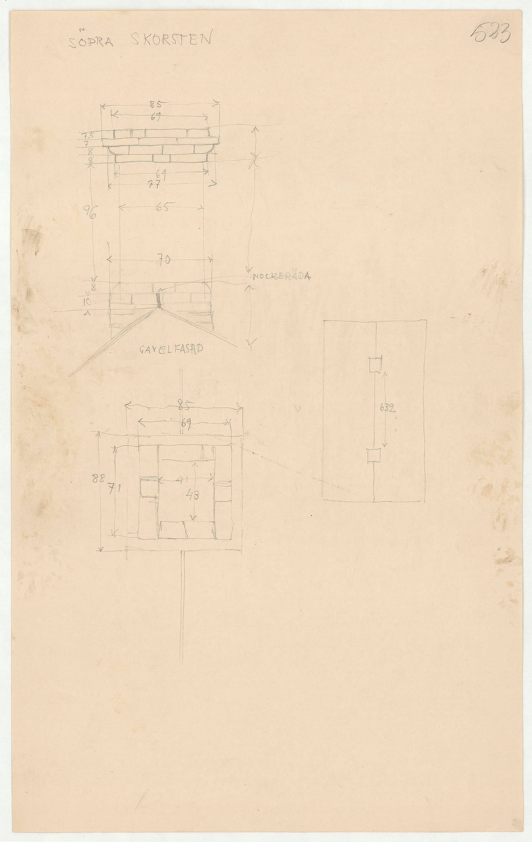 Titel: Skogaholms herrgård. Köksflygeln. Detaljritning. SÖDRA SKORSTEN.