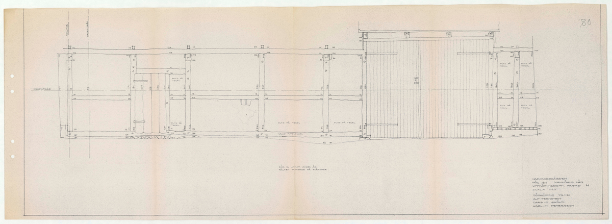 Titel: Skånegården. Västra loglängan. Fasadritning. Fasad H. Skala 1:20