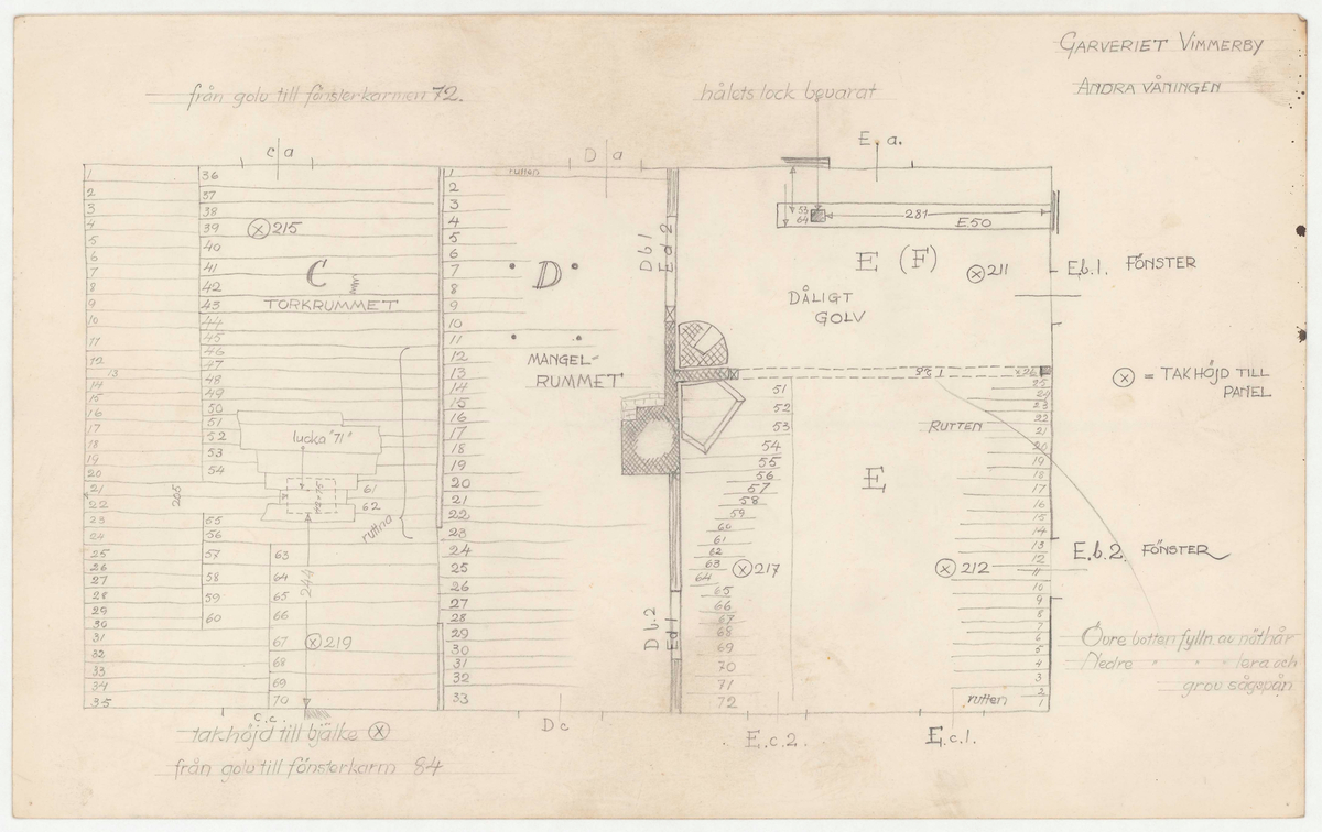 Titel: Garveriet. Uppmätningsritning. Andra våningen.
