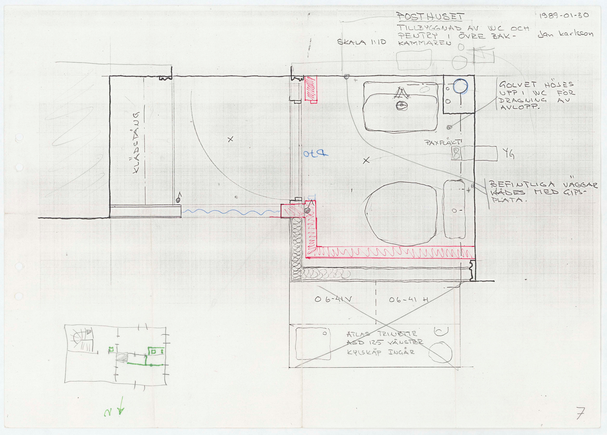 Titel: Posthuset. Planritning. Tillbyggnad av WC och pentry.