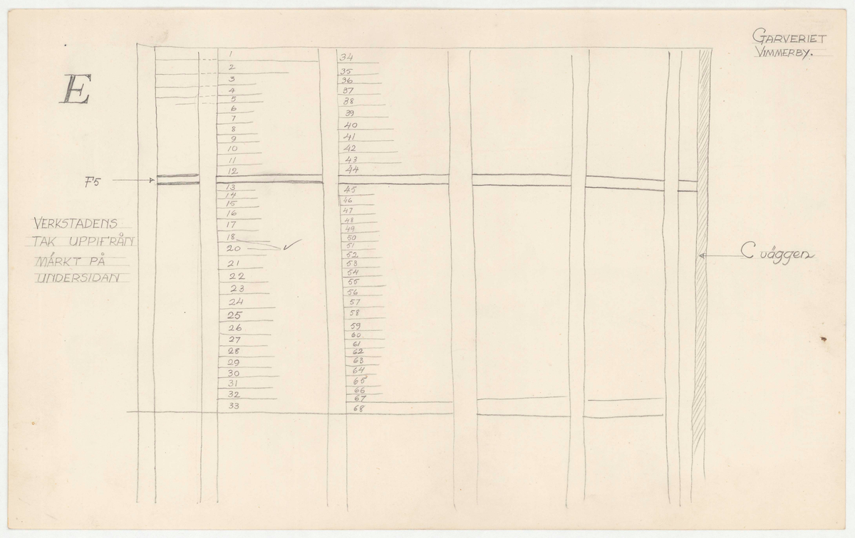 Titel: Garveriet. Uppmätningsritning. Verkstadens tak.