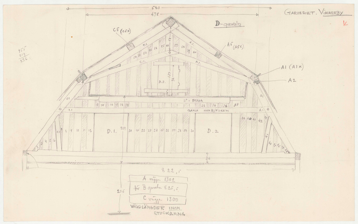 Titel: Garveriet. Uppmätningsritning. Gaveln.