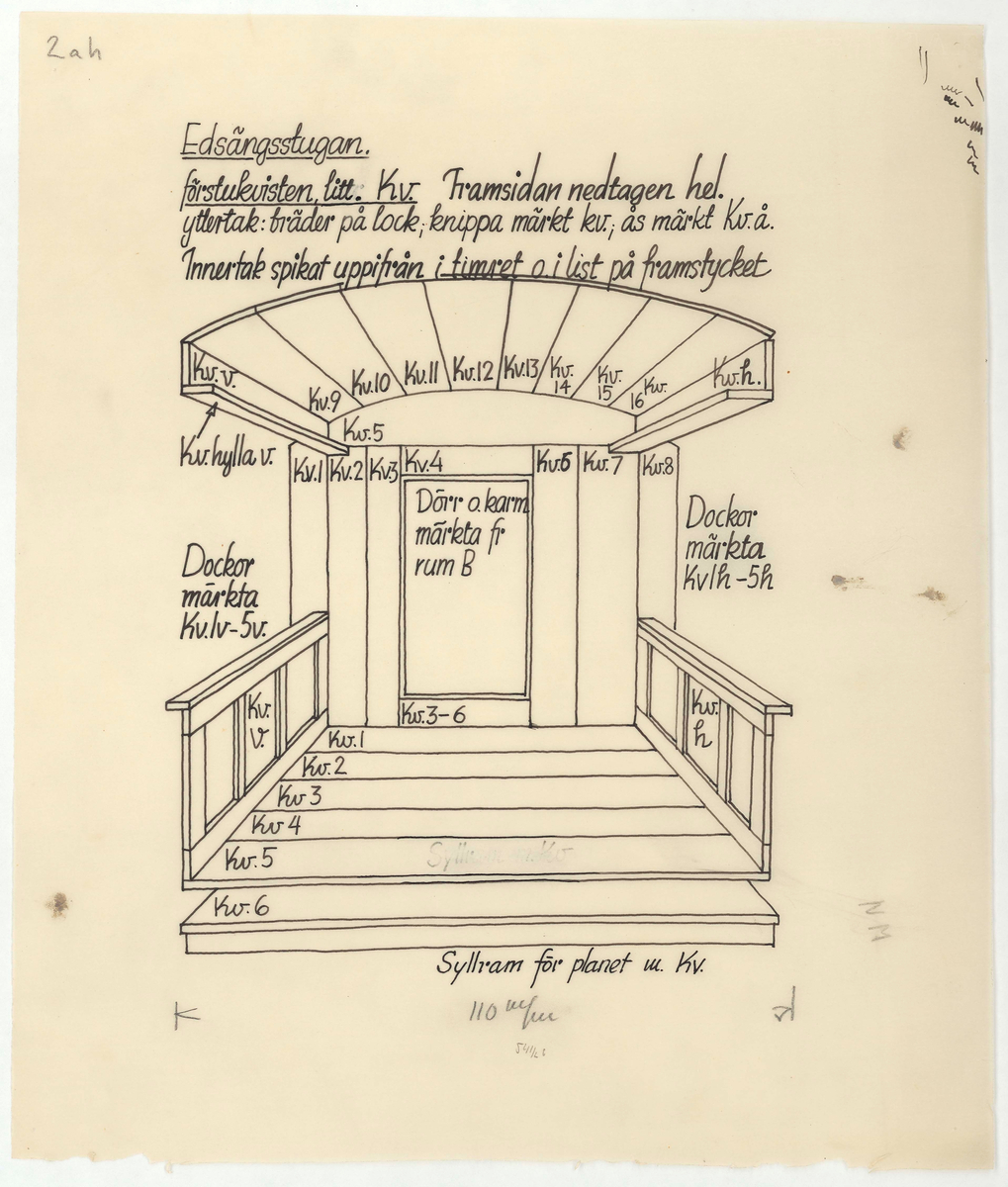 Titel: Delsbogården. Uppmätningsritning. Edsängsstugan. Förstukvist.