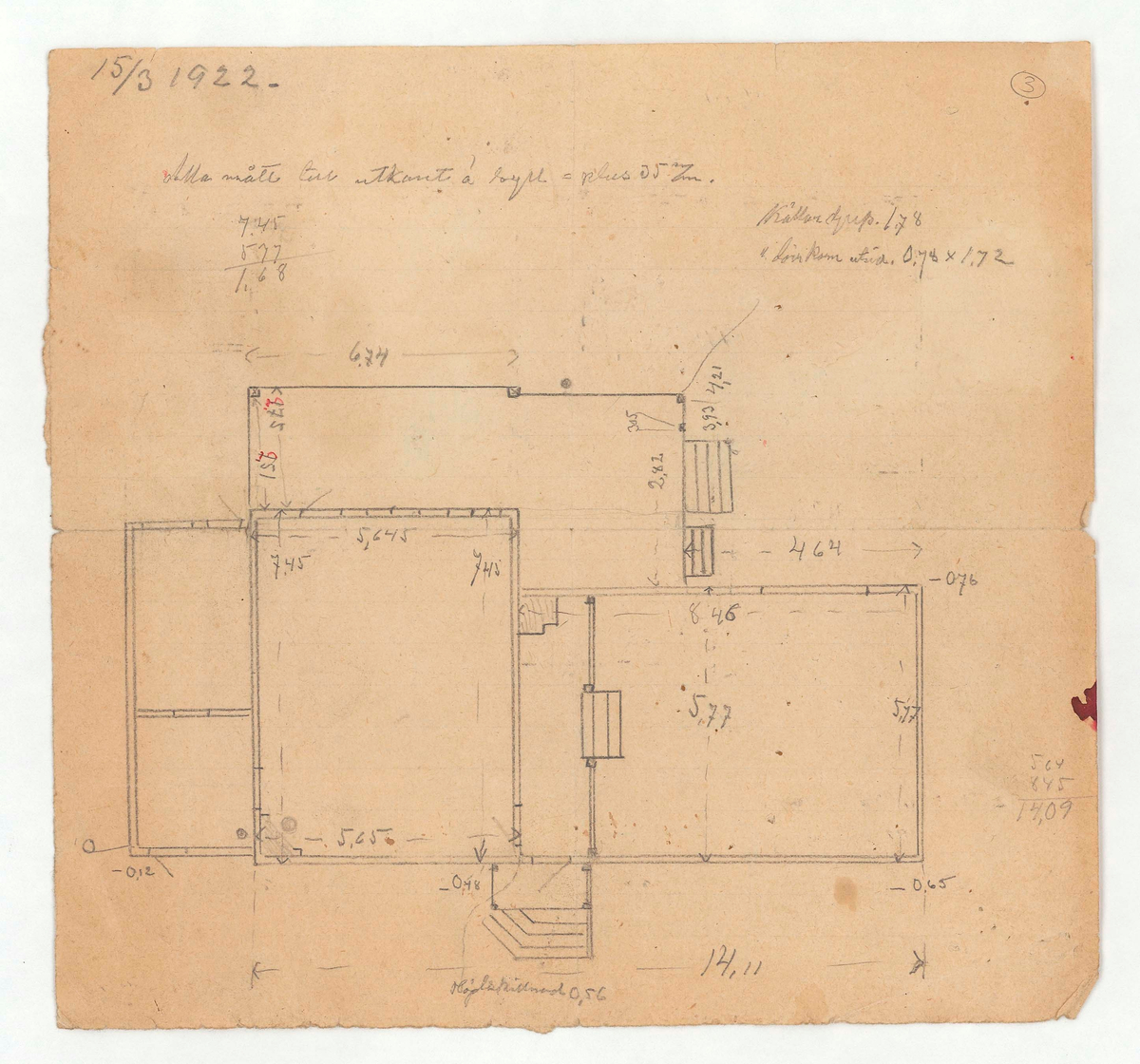 Titel: Kronbergs ateljé. Uppmätningsritning.