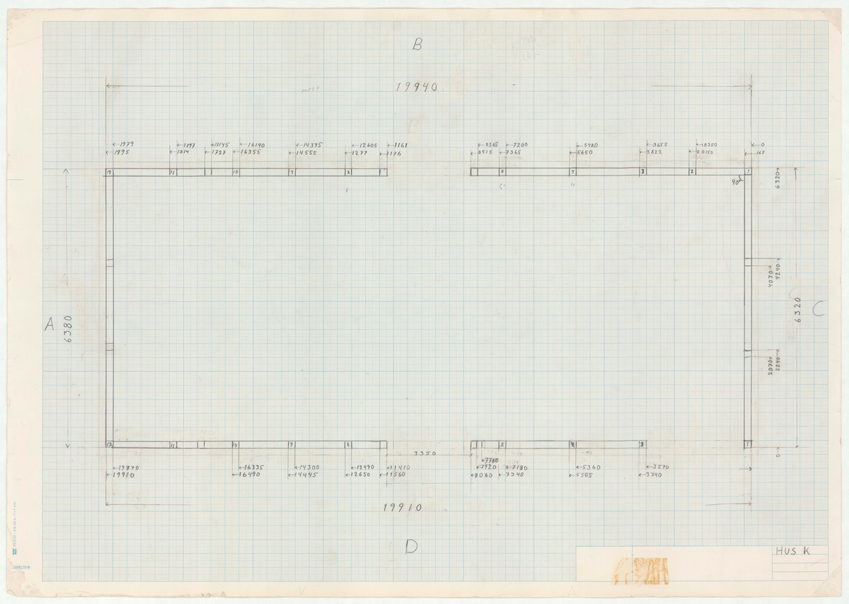 Titel: Skånegården. Västra loglängan. Detaljritning. HUS K.