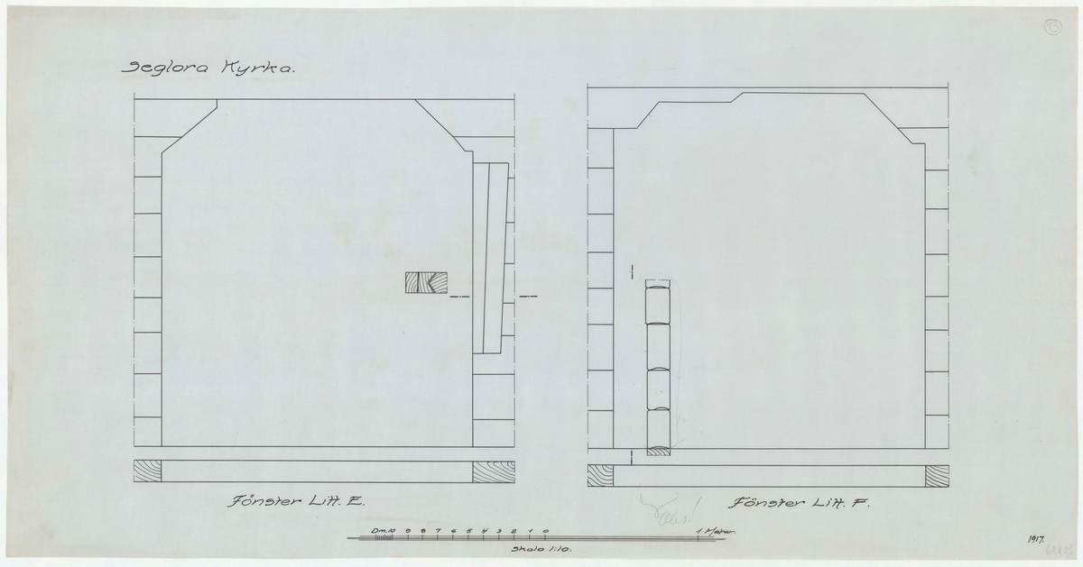 Titel: Seglora kyrka. Profilritning. Fönster.