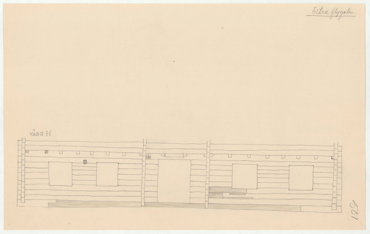 Titel: Skogaholms herrgård. Köksflygeln. Detaljritning. Östra flygeln. VÄGG H.