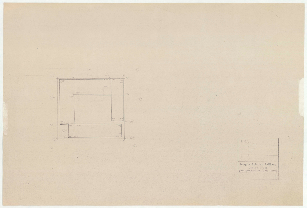 Titel: Skånegården. Planritning med yttre mått.