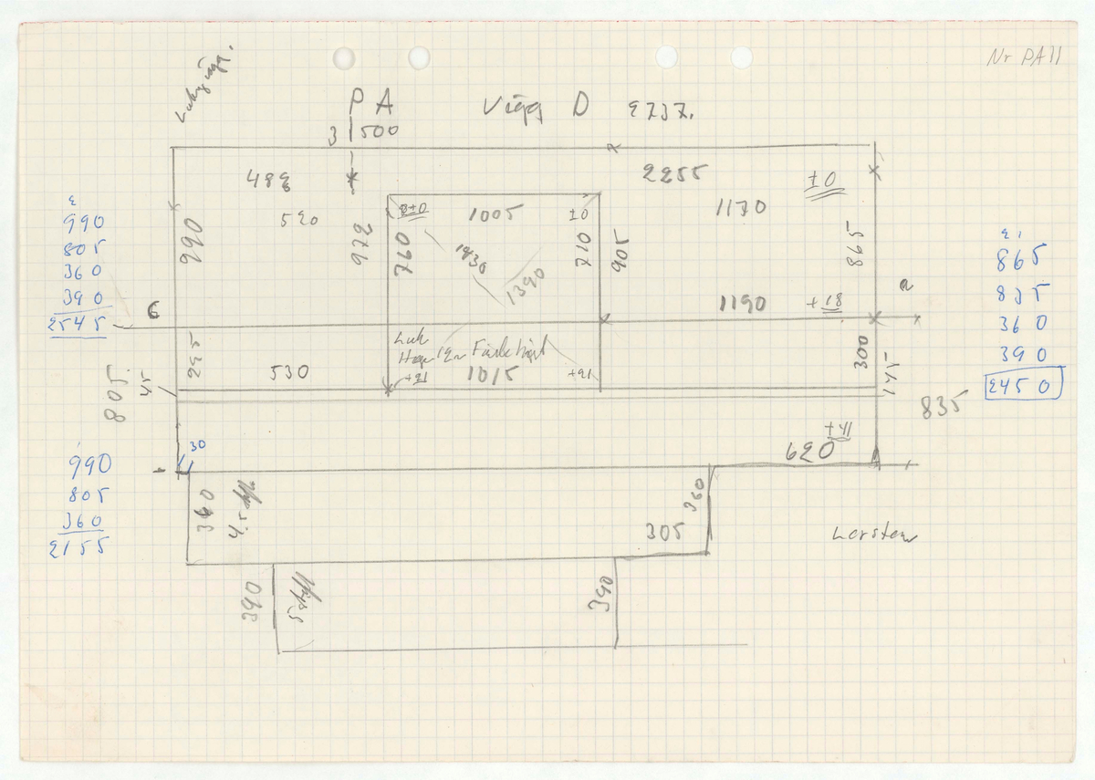 Titel: Skånegården. Bostadshuset. Detaljritning. PA. Vägg D.