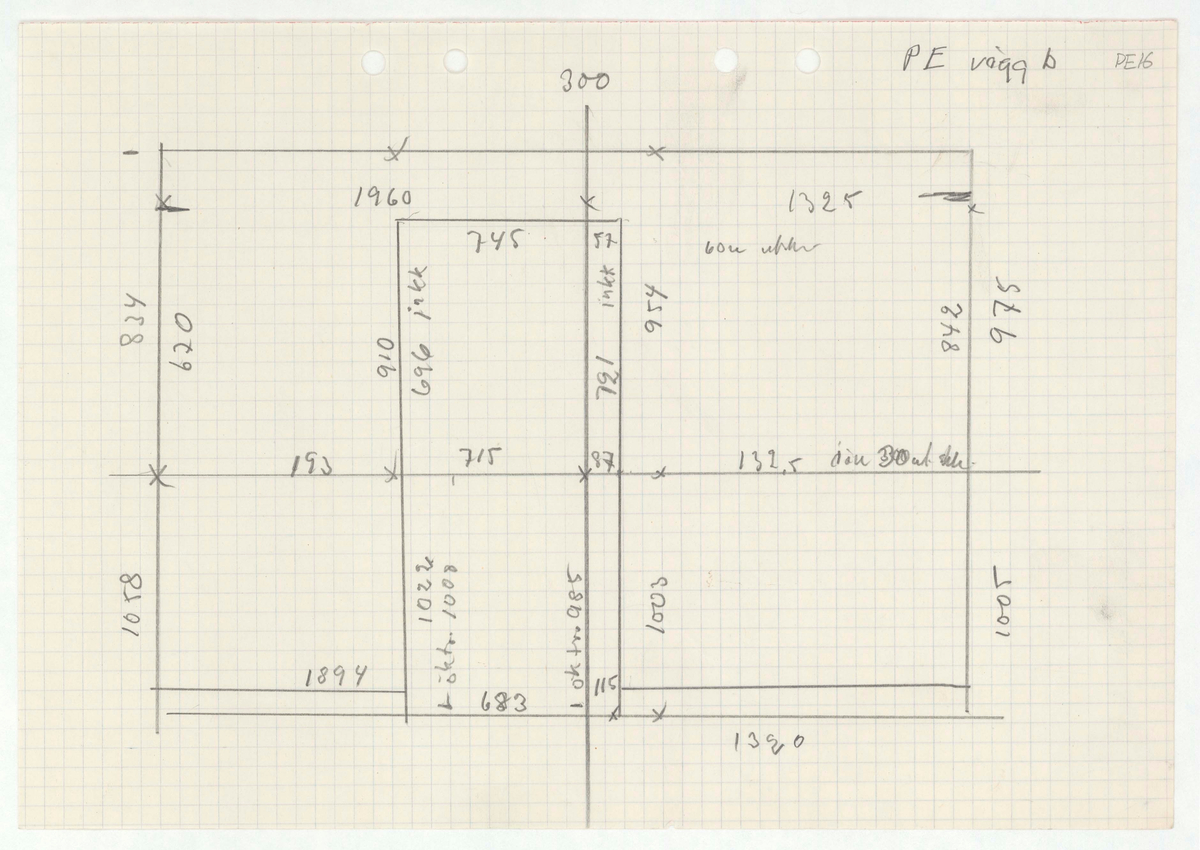 Titel: Skånegården. Bostadshuset. Detaljritning. PE vägg b.