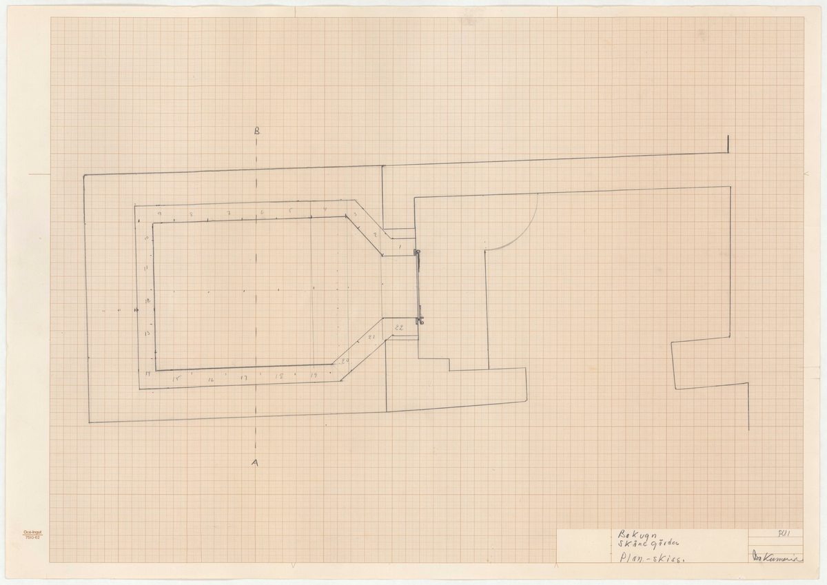 Titel: Skånegården. Bostadshuset. Detaljritning/planritning Bakugn.