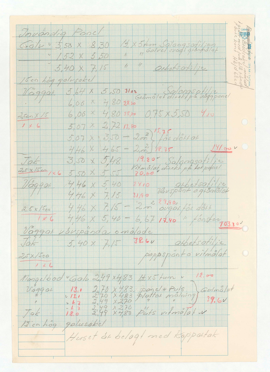 Titel: Kronbergs ateljé. Lista. Uppgifter om olika mått.