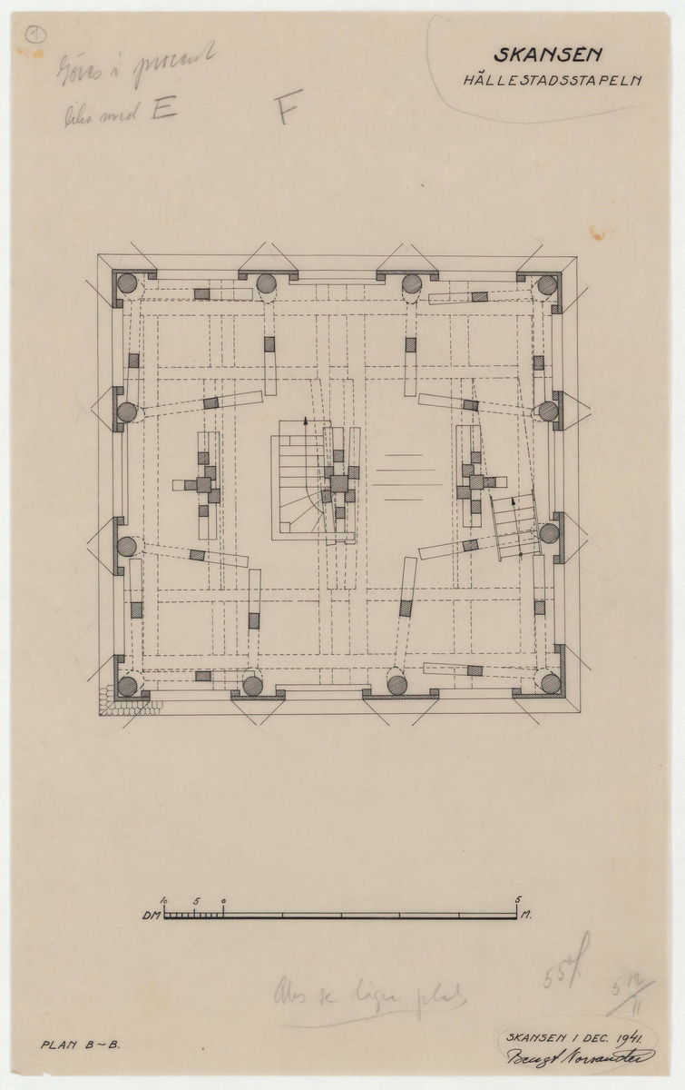 Titel: Hällestadsstapeln. Planritning. Plan B-B.