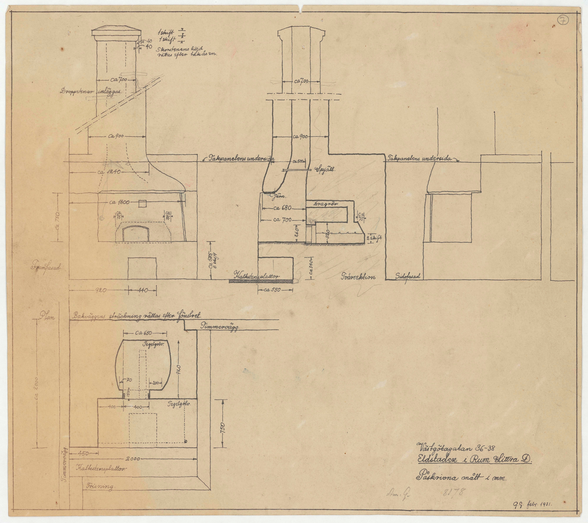 Titel: Skomakarverkstaden. Profilritning. Eldstad.