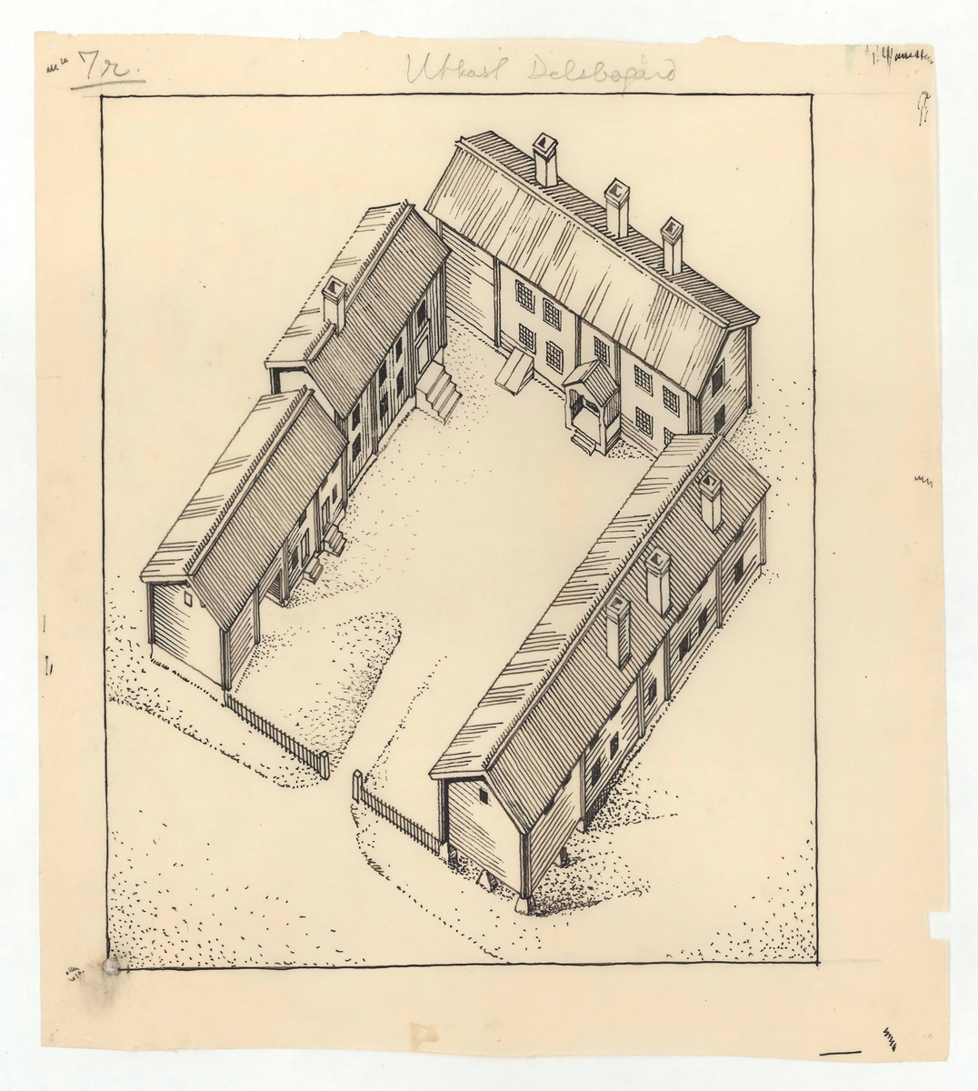 Titel: Delslbogården. Situationsplan (fågelperspektiv).
