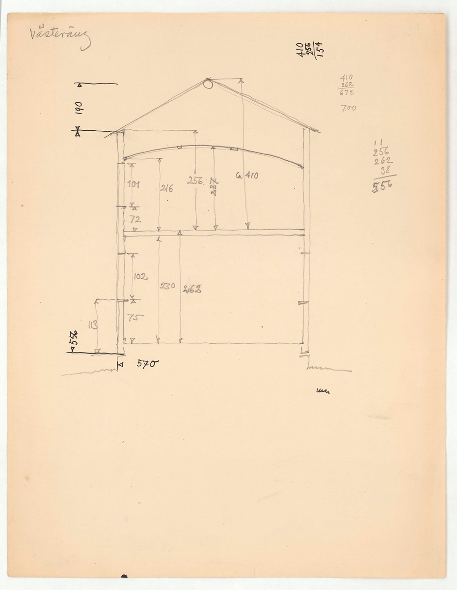 Titel: Delsbogården. Uppmätningsritning. Västerängsstugan. Förstukvisten.