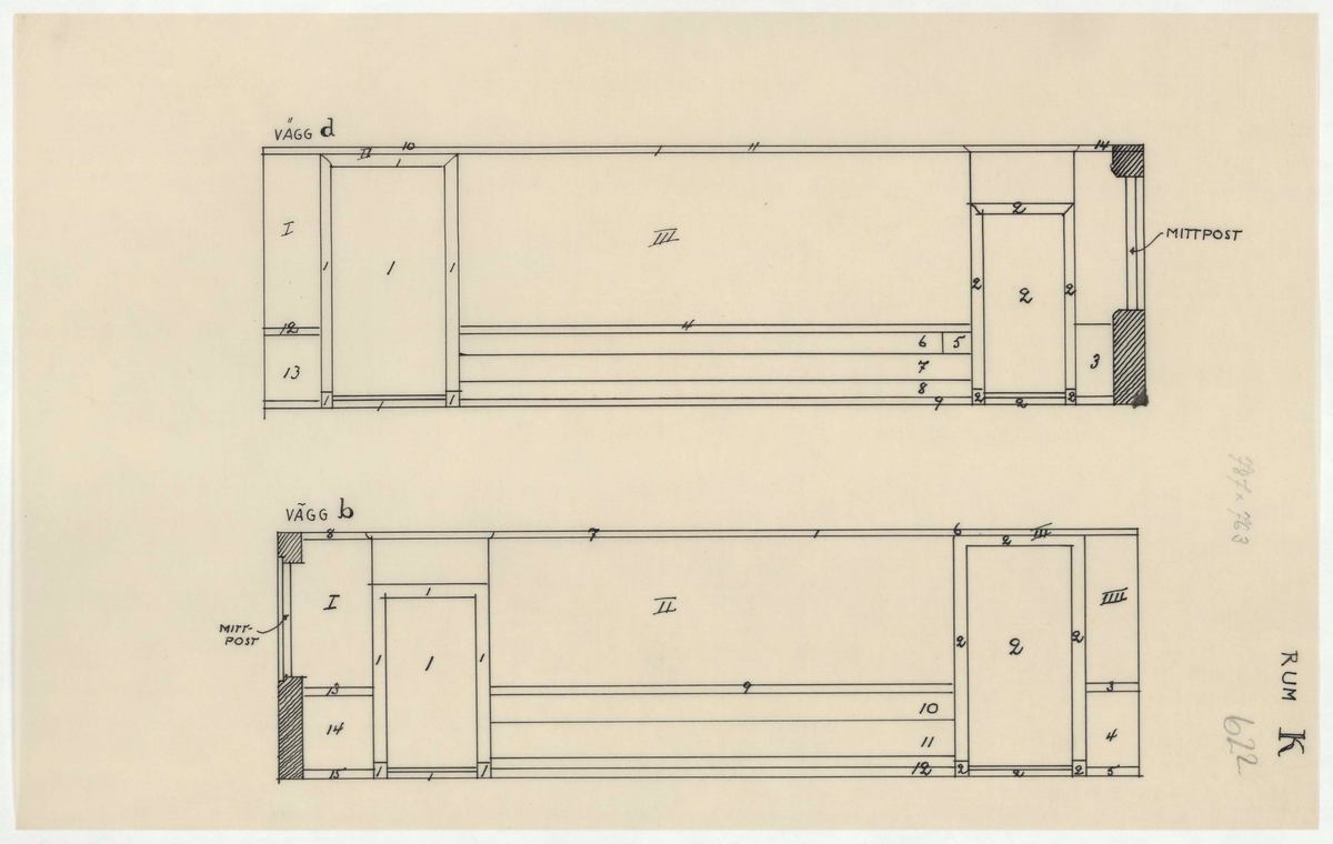 Titel: Skogaholms herrgård. Huvudbyggnaden. Detaljritning. RUM K.