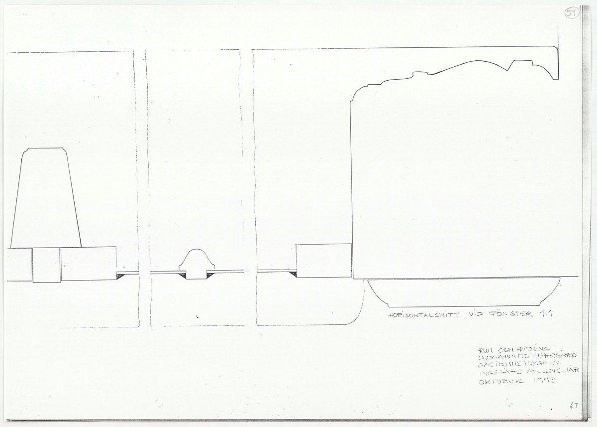Titel: Skogaholms herrgård. Biblioteksflygeln. Detaljritning. RUM OCH RITNING. Mer otydlig text finns.