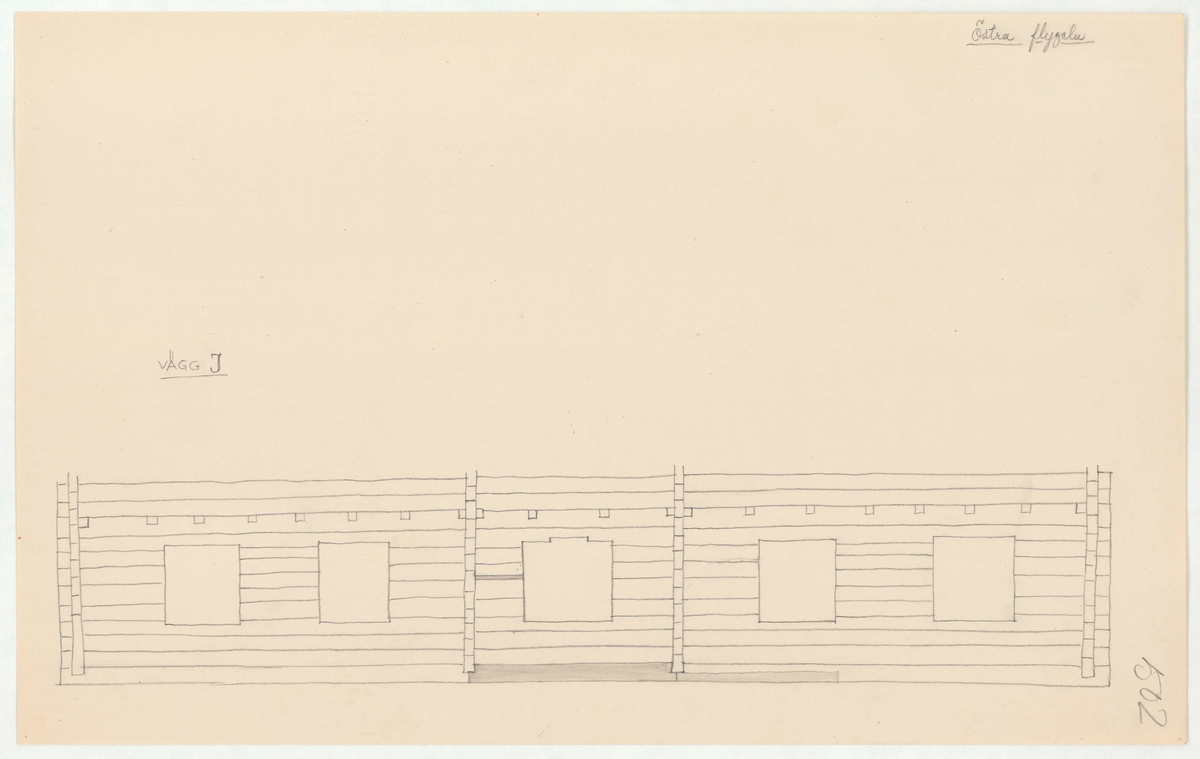 Titel: Skogaholms herrgård. Köksflygeln. Detaljritning. Östra flygeln. Vägg J.