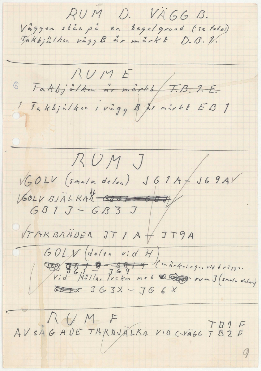 Titel: Skånegården. Bostadshuset. Anteckningar VÄGG TAKBJÄLKAR GOLV GOLVBJÄLKAR TAKBRÄDER Mer text finns.