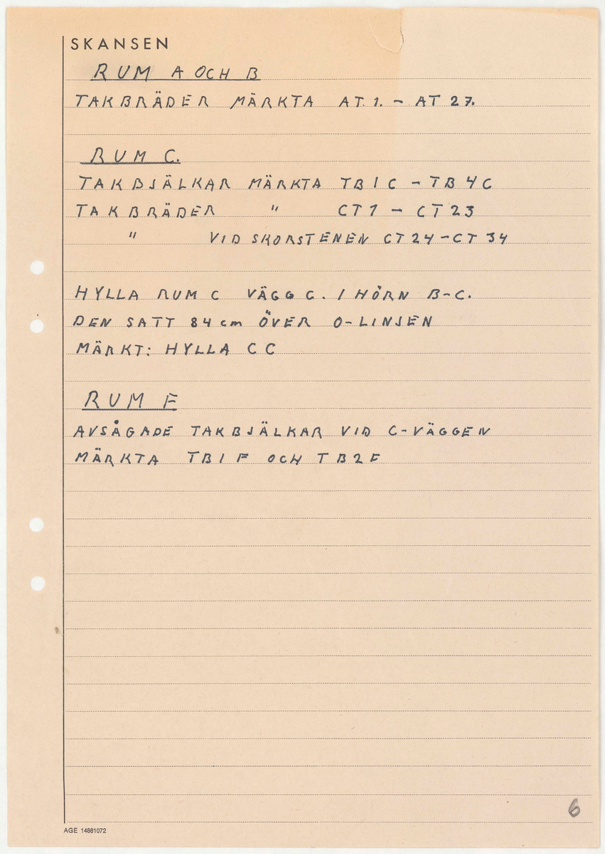 Titel: Skånegården. Bostadshuset. Anteckningar TAKBJÄLKAR TAKBRÄDOR HYLLA Mer text finns.
