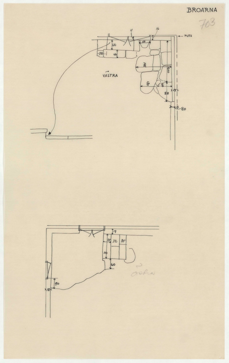 Titel: Skogaholms herrgård. Huvudbyggnaden. Detaljritning. BROARNA. VÄSTRA.