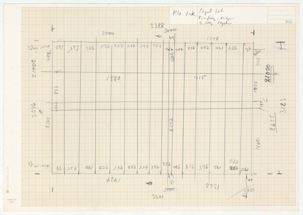 Titel: Skånegården. Bostadshuset. Detaljritning. PG tak. Mer text finns.