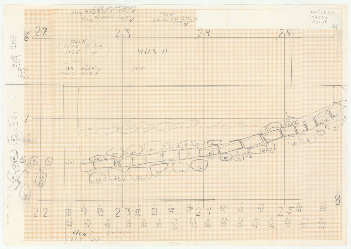 Titel: Skånegården. Västra loglängan. Detaljritning. VATTENRÄNNA HUS K.