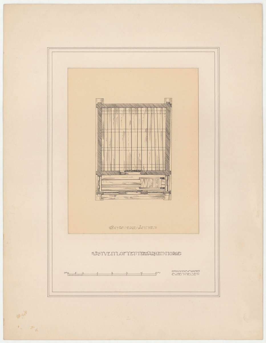 Titel: Vastveitloftet. Profilritning. Nedre våningen.