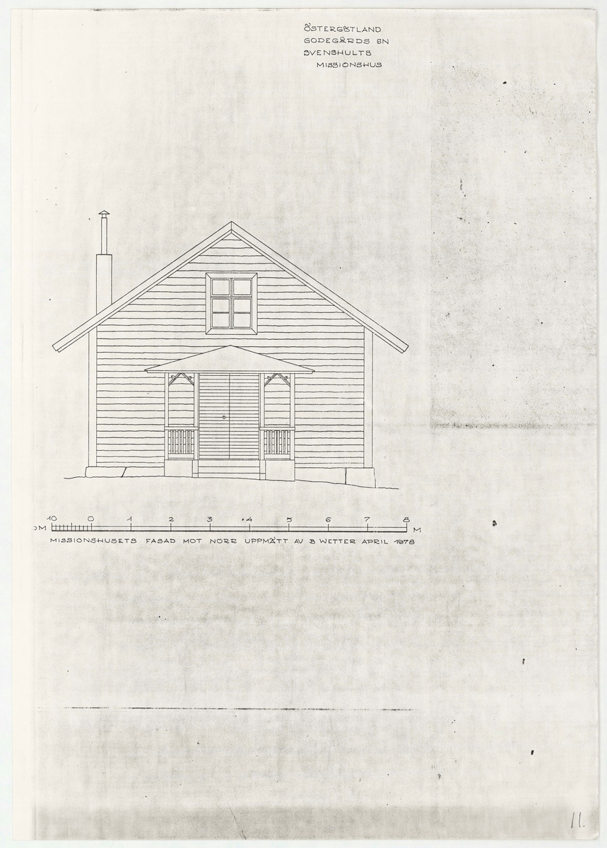 MISSIONHUSETS FASAD MOT NORR UPPMÄTT AV B. WETTER APRIL 1978.