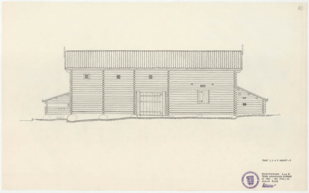 Titel: Älvrosgården. Loft- och loglängan. Sektionsritning.